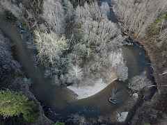 This delightful 1-bedroom, 1-bathroom cabin is a love letter to simpler times, showcasing original wood throughout and vintage windows that frame breathtaking creek views. Perched just steps from Hall Creek's sparkling waters, the cabin exudes timeless charm, with whispers of history in every knotty plank. Water and septic systems are not yet attached to the house. For now, a classic outhouse stands ready to serve with old-school flair. There is a RV lot that is plug & play ready. Spanning Hall Creek Road, the creek itself, and beyond, this expansive property offers a generous, mostly level lot that's perfect for outdoor adventures.