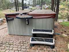 Large home near Kettle Falls and Lake Roosevelt. This 5 bed 3 bath home is tucked amongst the trees w/a prow-front to take in the view and the yard from the large windows and deck. There is a large living-room w/a 2 story vaulted ceiling, wood details, gas stove, a bay sitting-window and easy access kitchen. You will like the main-floor bed, bath and laundry but also enjoy that there is primary suite, bath and adjacent sitting-room on the upper floor w/an office or nursery near. The basement offers 2 more bedrooms, bathroom, family room and storage w/an outside exit. There is FA gas heat, A/C, city water, tile roof, wood siding, easy access and ample parking. There is a large garage/shop w/a wood stove, a back deck, hot tub, spk sys and fenced yard. The home is near the Marina and Park.