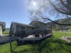 What a remarkable property. Almost too much to list. Large 4 bedroom home with primary bedroom on the main floor that has both a large bonus room and three-quarter bath attached. The large, bright kitchen has plenty of cabinet and counter space with eat-at breakfast bar. Large family room with pellet stove just off the kitchen. Door off the kitchen leads to the detached 2-car garage which makes unloading grocery more efficient. There's a large deck off the side of the home, perfect for BBQ's and entertaining. Beautifully landscaped yard with creek that runs through the front and side yard. Huge pass through shop with extra tall doors and concrete floor. You'll enjoy easy year around access off of the state highway.