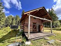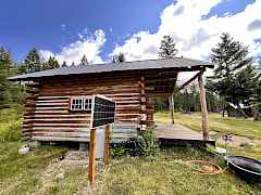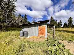 Cute, cute, cute little cabin in the woods. Beautifully wooded acreage all set up as your little homestead. This log cabin is really solid and has a nice covered porch and open floor plan with sleeping loft. On demand H2O with a stock tank that's been converted to a tub/shower. A wall mounted propane heater and wood stove provide the heat to keep you warm and cozy. Large older building could be used as a barn and storage. Chicken coupe with fenced enclosure, small loafing shed with attached fenced area fenced for animals. Located closed to National Forest land and about 8 miles from Curlew.