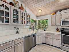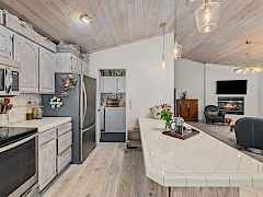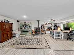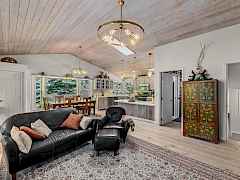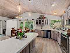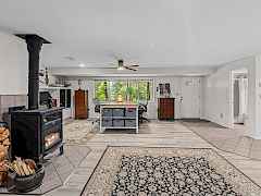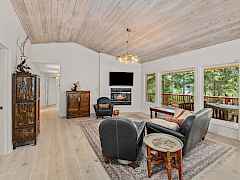 Escape to your private retreat with stunning Lake Roosevelt views and the possibility of assuming the 2.5% loan (ask about the terms)! This pristine 4.3-acre property features a beautifully updated 2-bedroom, 3-bath main home and a separate 1-bedroom, 1-bath guesthouse, offering flexibility for visitors or rental income. The upper level is a showstopper, featuring new, custom flooring made from locally sourced blue pine. The bright, Scandinavian finish on this character-rich wood enhances the natural light and complements the stunning lake views, creating a seamless connection to the outdoors. The bright, walk-out basement features new LVP flooring and is anchored by a new, EPA-compliant wood stove with a baking oven, ensuring a cozy and efficient home all winter long.