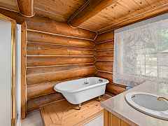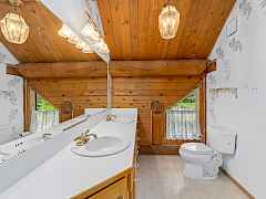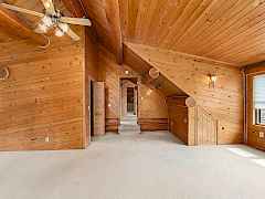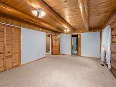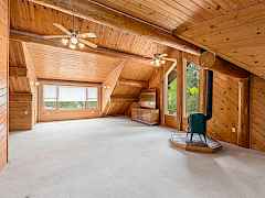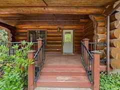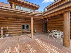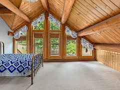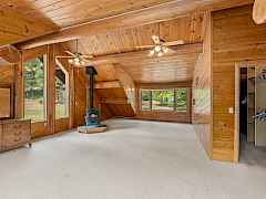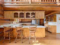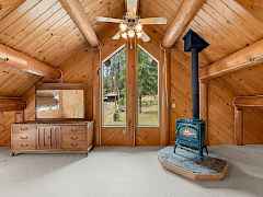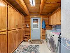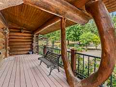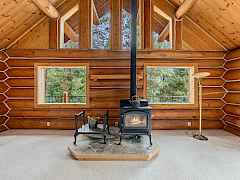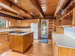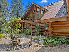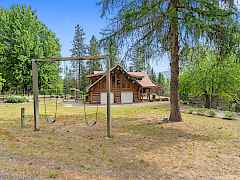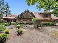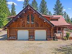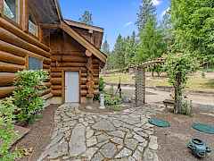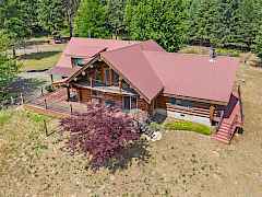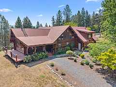 Nestled amidst serene acreage, this beautifully crafted log home offers an unparalleled blend of rustic charm and modern comfort. Upstairs, you'll find an extra-large primary bedroom along with a comfortable family loft area. Downstairs, the third bedroom is oversized and features its own ensuite bathroom. The laundry room offers built-in pantry storage, adding extra convenience. Step outside to experience breathtaking panoramic views of majestic mountains and the sparkling waters of Lake Roosevelt. A spacious deck awaits, ready to give a few minutes of relaxation or is the perfect place to entertain family and friends. A meticulously landscaped yard, a vibrant canvas of mature fruit trees and prolific berry bushes, makes this property ideal for anyone that enjoys the fruits that are