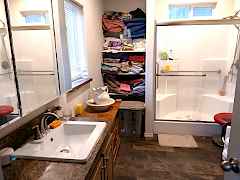 This beautifully upgraded Marlette home, situated on 21 acres of fertile land with stunning views of Lake Roosevelt, offers the perfect blend of modern amenities and rural charm. Featuring 9-foot ceilings throughout, a custom kitchen with a large island, shaker-style cabinets, and vinyl floors, the home is designed for comfort and functionality. With central heating, a wood stove, and a reinforced concrete pit-set foundation, it's ideal for year-round living. Outside, you'll find a Trex deck off the primary bedroom, two 200-amp electrical panels, and two 220v R.V. hookups, plus ample storage with two 46-foot storage containers. The deer fenced garden has 8-foot high fencing, established garden areas, and fruit trees. Additional features include a Blink security system