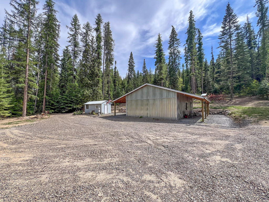 The perfect Get-a-way! Situated on just over 5 acres, this property has seclusion, easy access, timber, and a extremely well built shop/house with multiple outbuildings! Inside the shop, you have a large open floorplan for a living area, with swinging doors in place for toys. A partial kitchen/bar area is in place and a nice Quadra Fire stove to keep you warm! Towards the back of the shop you will find a nice sized bedroom, full bathroom, and utility/laundry room. Radiant Floor heating is in place, just needs hooked up to a water heater/boiler! Outside, you have a nicely landscaped area that is ready for your final touches. Plenty of area to build your dream home, or finish out the current quarters! Well and power have been redone and certified, and numerous loads of new gravel!