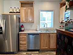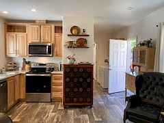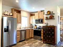 This immaculate and bright home has 2 bedrooms, one bath w/an open kitchen-living concept, beautiful cabinets and appliances. It is in better than New condition w/the added amenities. Hard floors make cleaning easy, there is a beautiful covered deck w/railings surround, a new storage shed, gravel parking and a lovely landscaped fenced back yard w/berries and herbs. The home has an electric furnace and is well insulated. This is a peaceful neighborhood that offers owner-occupied living and they pay your water, sewer and garbage w/your Lot rent. This property is near Lake Roosevelt w/a walking trail to the water, is also walking distance to the convenience store and just 4 miles from Kettle Falls. The owners of the Park are great about the quality of services. Lot rent $400.00