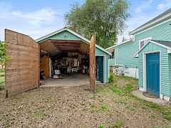 Charming 1940s Home with modern updates. Beautifully maintained 1.5 story home with a walkout basement, stunning hardwood floors, spacious family/game room & updated bathroom. Comfort is a priority with a new heat pump, ensuring energy-efficient temperature control year-round. The updated bathroom & plumbing add a fresh touch, bringing both style & peace of mind to daily routines. Enjoy the outdoors with a large, enclosed patio, perfect for relaxing with your morning coffee or entertaining guests. The newly fenced & landscaped yard creates a private & inviting atmosphere, while the dedicated garden space offers raspberries, strawberries, rhubarb, & plum tree. The detached garage with additional storage ensures you have all the space you need for hobbies, tools and seasonal essentials.